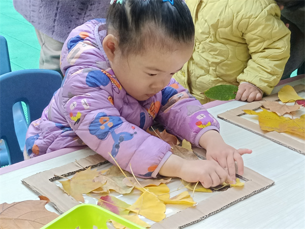 甜橙二班的宝宝们利用各种常见的树叶作为材料,开展丰富多彩的树叶粘贴画活动,共同体验冬日独特的美。