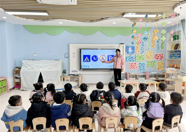 小班教师根据幼儿的年龄特点,通过讲故事、播放宣传视频、认识交通标志等方式,引导幼儿学习交通安全知识,萌发幼儿自我保护意识。