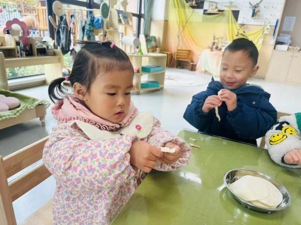 小一班的孩子们则聚在一起,共同参与了一场包饺子的活动。他们认真听取老师的讲解,学习如何擀皮、包馅、捏合,虽然手法各异,但每一个饺子都承载着孩子们的用心和期待。此外,他们还参与了餐桌布置和食物礼仪体验活动,学习如何在餐桌上表现出良好的教养和风度。