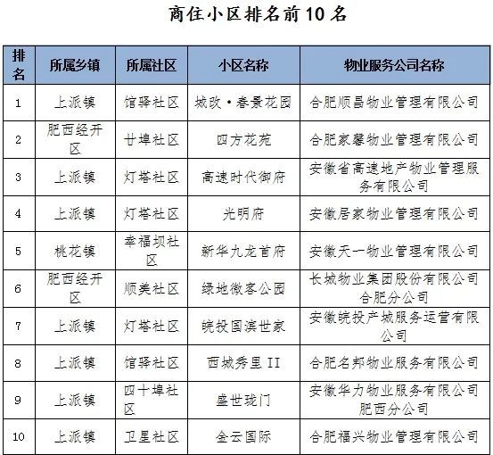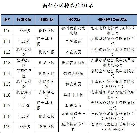 根据《肥西县住宅小区物业管理工作(物业企业)考核办法》文件精神,综合考核结果,现对商住小区排名后10名的9家物业服务企业分别给予黄牌、红牌警告。
