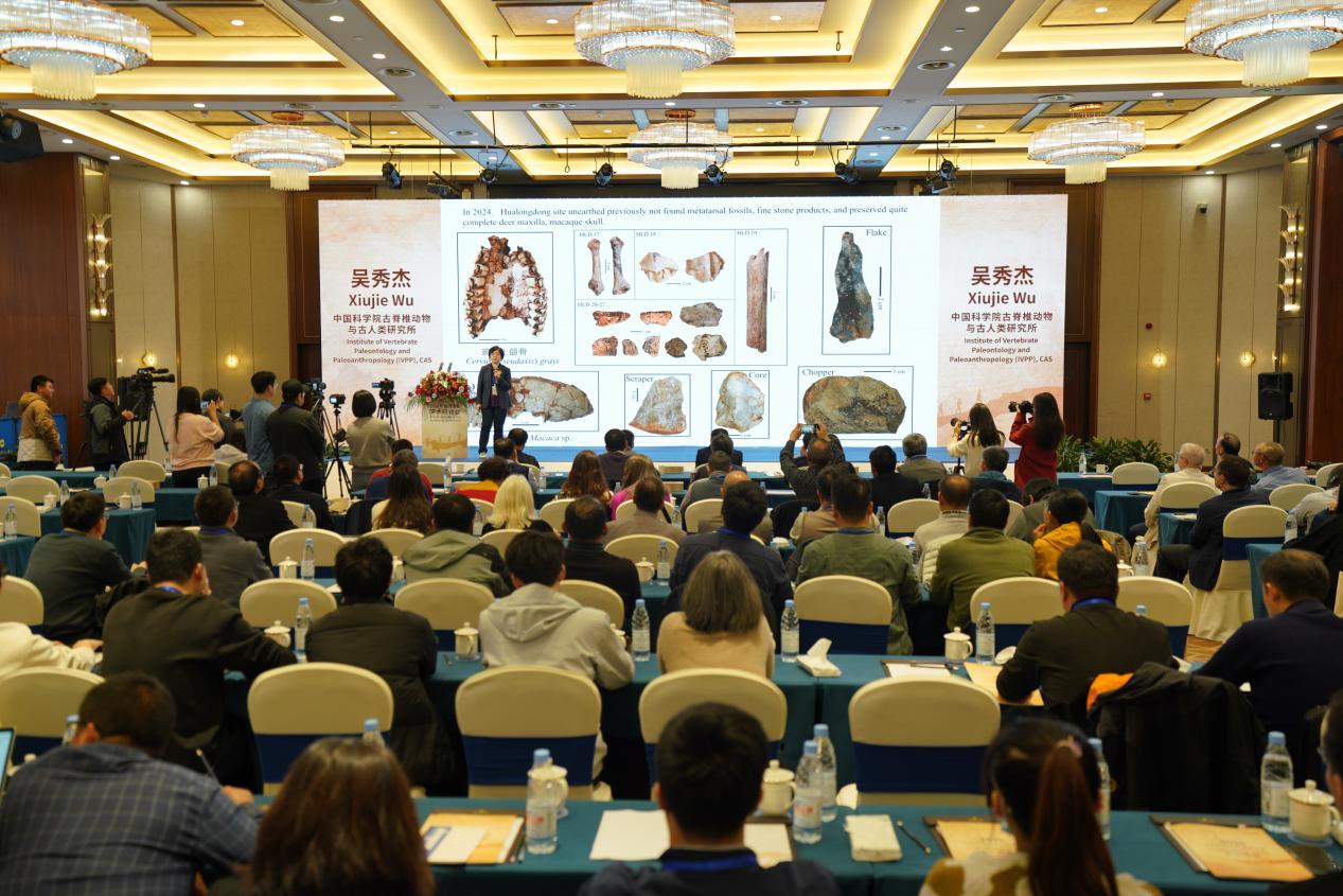 12月8日上午,在华龙洞遗址学术研讨会上,中国科学院古脊椎动物与古人类研究所吴秀杰研究员发布了2024年华龙洞遗址学术研讨会成果——华龙洞人是东亚地区向智人演化的最早古人类。2024年华龙洞遗址共发掘出土了11件古人类化石,其中包括1件保存完整的足部跖骨,40余件石制品、大量哺乳动物化石以及3种爬行类化石等。