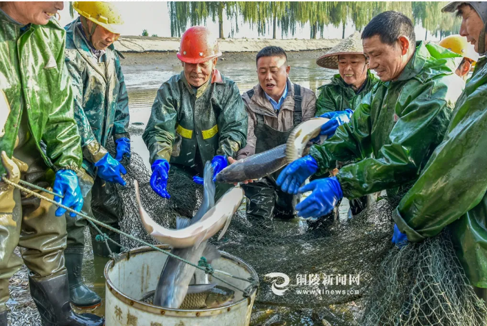12月6日,在铜陵市铜官区西湖镇横塘乡村生态园,鱼塘主人张贤锁和捕鱼工人一起干塘、拉网、捕鱼。近年来,铜官区积极引导当地农民发展绿色生态种植,促进农业现代化和农民增收致富。(储著传)
