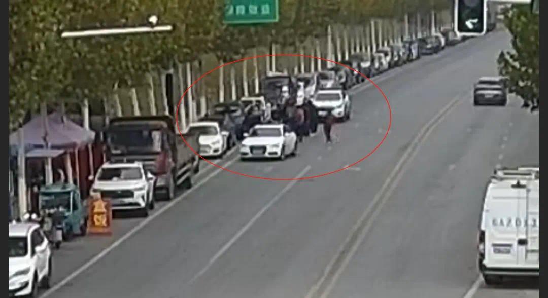 与此同时,马路对面的两名过路群众也一路小跑,赶到现场帮忙,一个又一个热心群众陆续加入这个临时组建起来的“爱心救援队”。