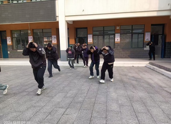 12月13日,学校再次开展了地震逃生演练。演练前,学校安全办制定了详细的演练方案,各班班主任也给学生讲述了地震逃生知识,特别强调了在疏散时,要不推挤,严肃对待,在老师的引导和统一指挥下有序疏散。下午2点35分,原本书声琅琅的校园突然响起了警报声。任课教师迅速冲到走廊、楼道组织大家有序撤离。学生们迅速用手抱住头部,快速有序地沿着事先拟定的应急逃生路线疏散逃生。全校十一个班级在一分钟之内全部安全疏散到学校广场空旷地带。