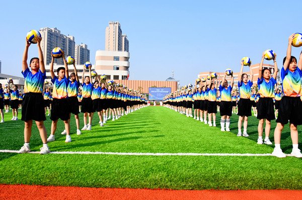 此外,南小恒盛校区一直致力于做到排球运动全员化、规范化。该校自编自创的排球操已经成为了学校的一面“金字招牌”。每年一度的排球操比赛更是成为全校师生共同期待的盛事。比赛中,各班级学生身着整齐的服装,伴随着动感的音乐,整齐划一地完成排球操动作。同学们将排球技巧与舞蹈韵律巧妙融合,创意十足,充分展现了排球运动的魅力与青春活力。