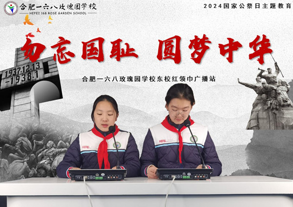 为深切缅怀南京大屠杀死难同胞,铭记侵略战争给中华民族带来的深重苦难,激励全校师生勿忘国耻、砥砺奋进,合肥一六八玫瑰园学校东校于12月9日至13日精心策划并成功举办了“团建带队建‘勿忘国耻 圆梦中华’国家公祭日主题系列活动”。