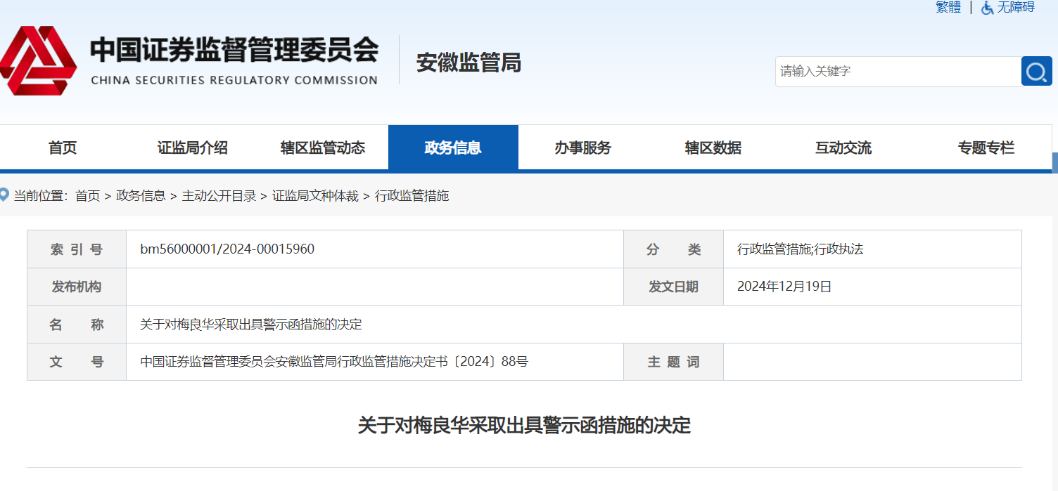 12月19日,安徽证监局披露多则行政监管措施信息,其中,中科私募基金有限公司因存在三大违规行为被安徽证监局责令改正。