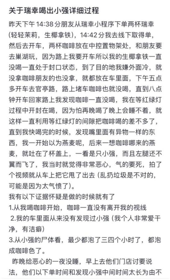 近日,有安徽合肥网友陈先生在网上发文称在瑞幸咖啡中发现了疑似蟑螂异物,此事立即引起公众关注。