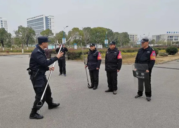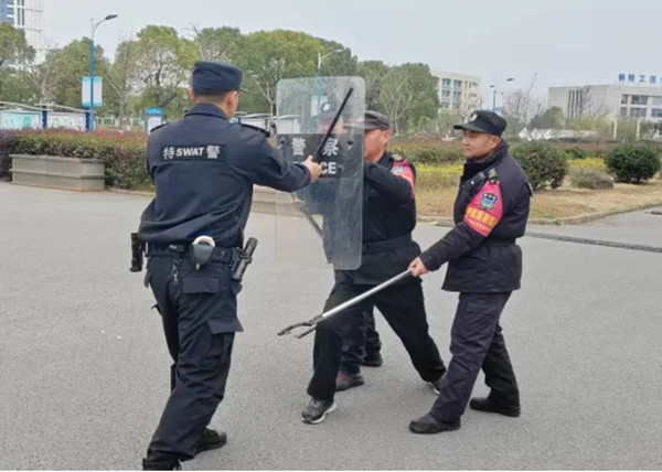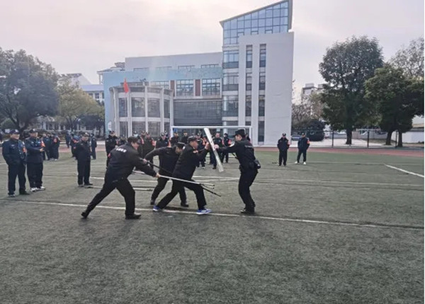 为提升学校保安队伍应对突发恐怖事件的能力,确保校园安全,12月21日,铜陵理工学校保卫科组织部分保安人员参加了铜陵市特警支队在杨家山小学开展的防卫器械使用培训,学习掌握防暴盾牌、警棍、防暴钢叉、防暴脚叉等器械的正确操作规范。市特警队员边解说边演示,并指导保安人员进行最小作战单元的演练,学校保安人员展现出了良好的团队协作精神与应急处置能力。