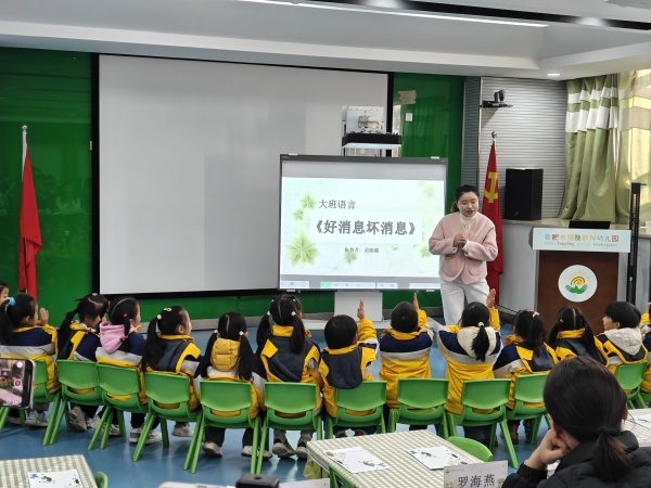 活动中,瑶海片区各幼儿园共展示了四节语言领域集体教学活动。其中,谈靖名师工作室学员范晓璐展示了大班谈话活动《好消息坏消息》。其以绘本为媒介,引出谈话话题,引导孩子们围绕“好消息坏消息”的话题进行谈话,孩子们各抒己见,大胆表达了自己的观点。