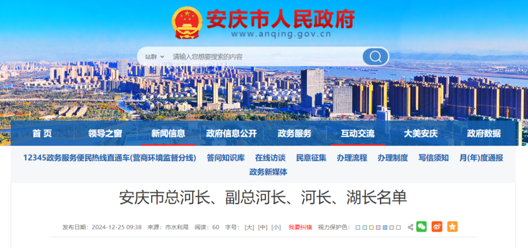 为进一步加强安庆市河湖长制工作的组织领导,自觉接受社会监督,12月25日,安庆市公布安庆市总河长、副总河长、河长、湖长名单。