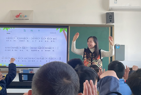 12月17日下午,王蓓蓓老师执教的四年级《荡秋千》的课堂教学尽显名师风采。王老师以大单元理念为指引,以“荡秋千”的情境层层递进,巧妙地引导学生在唱中学,学中玩。王老师的教态轻松亲切,善于引导,注重因材施教,学生通过聆听歌曲、乐句解决、了解歌曲进而表现歌曲。整个课堂环环相扣,创编环节中王老师利用仡佬族“荡秋千”的方式巧妙引出合作,并将秋千的“嘎吱”声与歌曲结合二声部,初次带领学生感受合唱的魅力,同时也激发了吴家店镇观摩教师对课堂教学形式多样化的探索与研究。