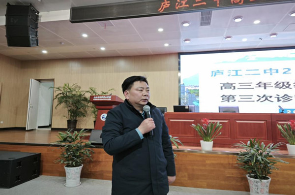 12月25日下午,庐江二中高三年级部在文正楼一楼报告厅召开教学工作会议暨“诊断性练习三”成绩分析会。学校党委副书记、校长杨应明等校级班子成员和全体高三教师参加会议,校党委委员、副校长宋丰明主持会议。