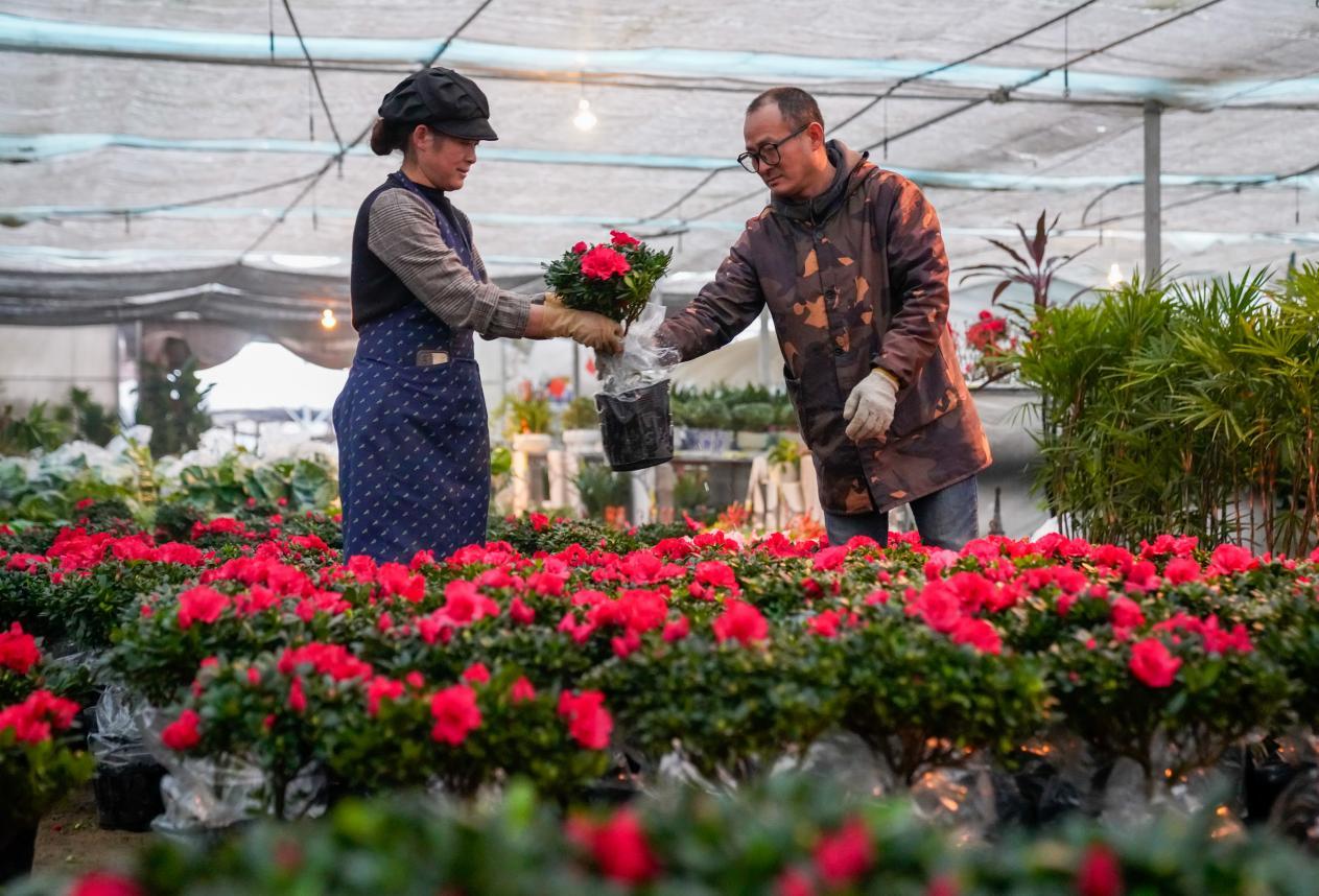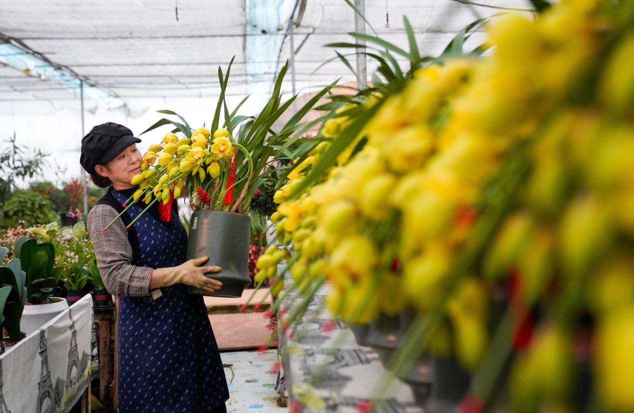 2025年元旦、春节日益临近,铜陵市郊区大通镇大院村花卉市场迎来销售旺季,不少商家积极备货,精心准备品种丰富的鲜花、绿植,吸引顾客前来选购。