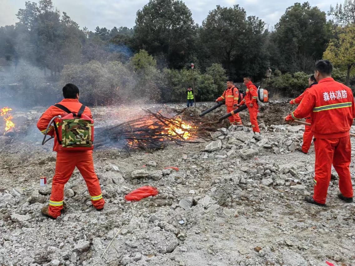 演练开始,巡查员发现火情立即上报,森林防火队伍快速反应、迅速行动,手持油锯、割灌机、阻燃剂等器械开设防火隔离带,并使用便携式风力灭火机、手投式森林灭火弹等装备,展开扑救工作。对于人员无法靠近的悬崖火点,采取无人机投掷灭火弹,实施远距离高效、安全灭火。经过1个多小时的全力扑救,现场余火全部扑灭,实战演练任务顺利完成。此次演练充分展示了森林防火队伍有序、高效、安全的扑火战斗力,进一步锤炼应急救援系统快速响应能力、组织指挥能力和统筹协调能力。