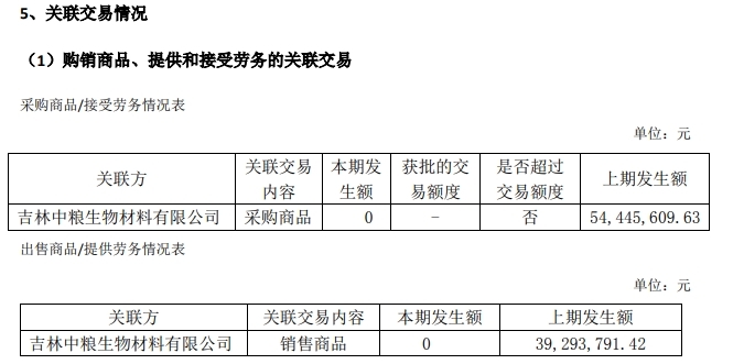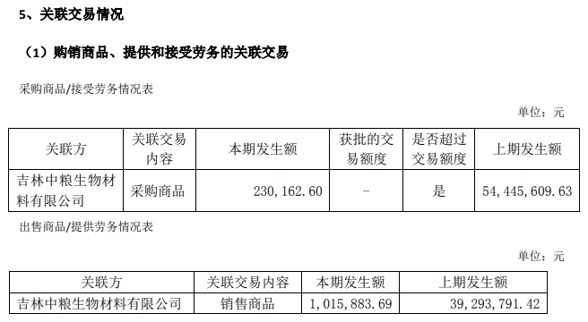 2023年度,公司与关联方吉林中粮生物材料有限公司间存在购销业务,销售及采购发生额分别为101.59万元和23.02万元,但2023年年报相关披露金额为0,不符合相关规定。