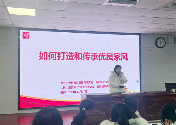 本次活动邀请到合肥市家庭教育专家王群芳老师为大家带来“如何打造和传承优良家风”的专题讲座,为家长深入解读家风的特征、重要性以及家庭教育方法。