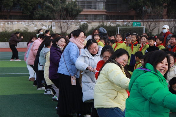 教师的暖场拔河比赛,点燃了全场的热情,绿茵场上师生呐喊助威的声音响彻整个校园,让这个冬天变得积极昂扬。