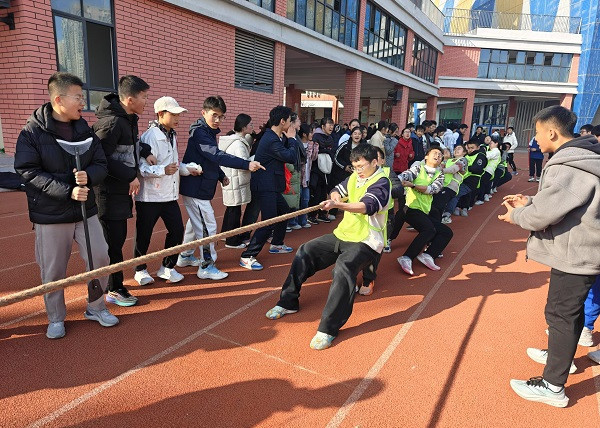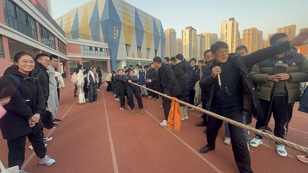 活动伊始,学校三个年级举行了“迎新年,庆元旦”拔河比赛。赛场上,同学们个个斗志昂扬,咬紧牙关、紧握绳子、身体后倾,只等一声令下,便卯足力气比拼,加油声、欢笑声此起彼伏与同学们的汗水交织在一起,充分诠释了青春与生命的力量。