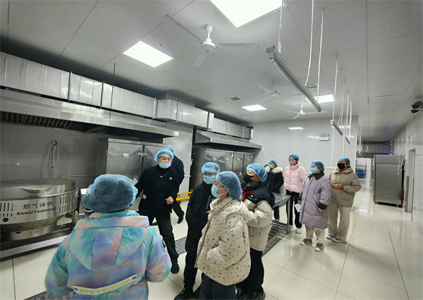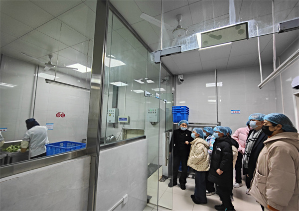 随后,膳食委员会成员们在校领导的带领下走进了食堂后厨进行实地参观和检查。委员们依次参观了操作间、分餐间、消毒间、储藏室等多个区域。每到一处,食堂经理都会详细介绍该区域的功能及其日常管理情况。通过这些详细的讲解,委员们了解了食堂从食材采购、储存、加工到最后把午餐送到孩子们手中的全过程。据悉,六小荣城自11月19日成立膳食委员会以来,多次邀请委员们进食堂检查、陪餐等,高度重视师生膳食安全。