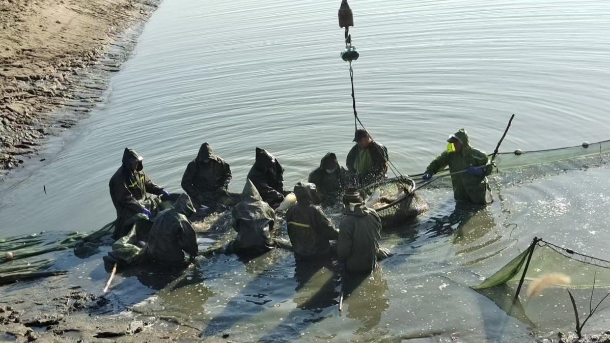 2025年1月9日,埇桥区大店镇大店村积极开展水产捕捞作业,水产基地在村“两委”及工作人员的辛勤耕耘和科学养殖下,迎来新一季的丰收盛况,助力大店村的集体经济实现“开门红”。
