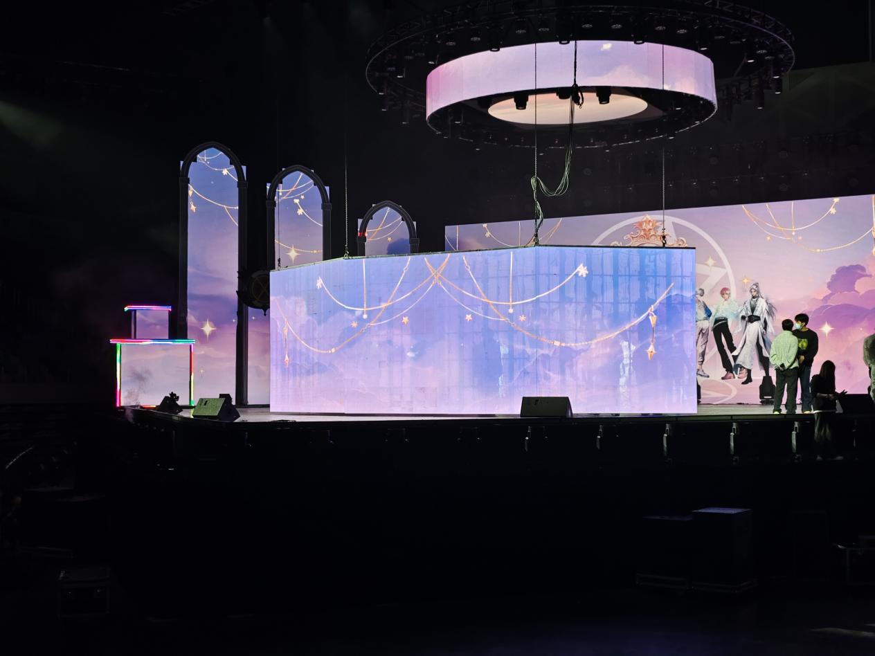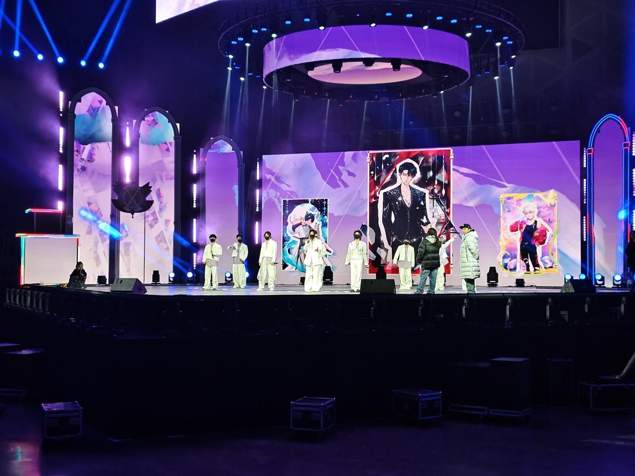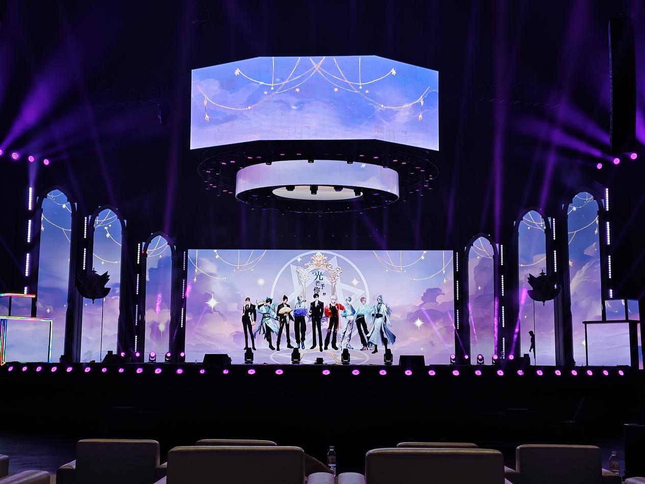 舞台中央大幅动漫海报闪烁的霓虹灯带交织出梦幻的次元空间,每一处细节都饱含着星次元对每一位粉丝的深情厚意与真挚感谢。从舞台的灯光设计到歌曲的编排,每一个细节都力求完美,旨在为粉丝们呈现一场无与伦比的视听盛宴。