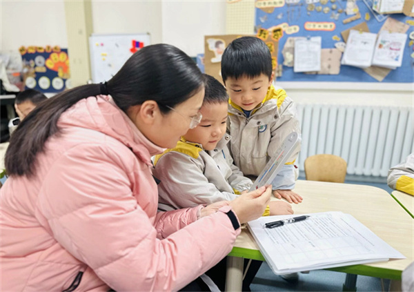 本次期末展示,由庐实幼淮河路园执行负责张文雯带领教研组走进各班进行互动,老师们以《指南》和核心经验为依据,立足健康、语言、社会、科学和艺术五大领域,根据每个年龄段幼儿的发展规律和特点,采用互动、观察、操作等多种方式进行。