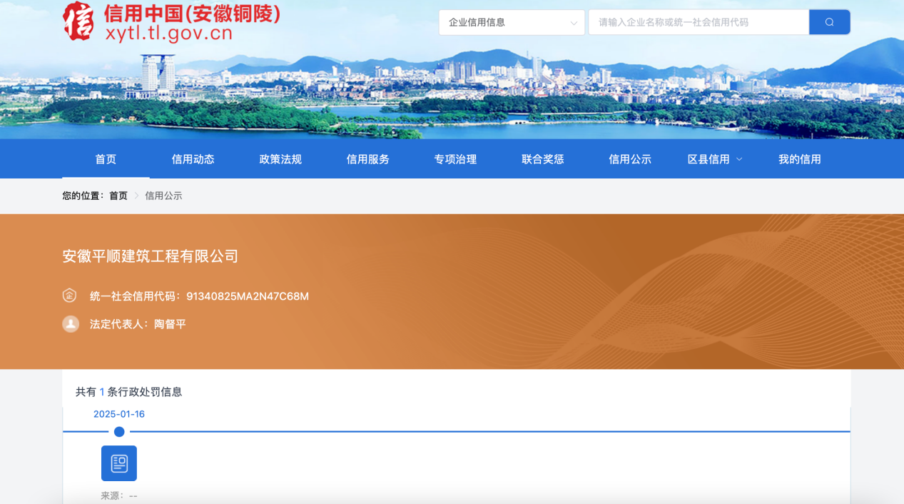 近日,信用铜陵披露行政处罚信息,因串通投标,安徽百宇建设有限公司、安徽平顺建筑工程有限公司分别被处招标项目合同金额千分之五的罚款,即5.8705万元。行政处罚决定书文号为铜公管处罚﹝2025﹞1号。