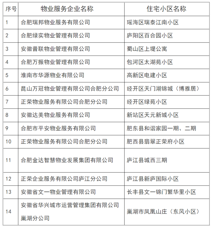 1月22日,合肥市住房保障和房产管理局发布《关于对电动自行车管理履职不到位物业服务企业的通报》。决定对瑞泰江南等14个住宅小区进行挂牌督办,对合肥瑞邦物业服务有限公司等12家物业服务企业给予相应的通报处理。详情如下: