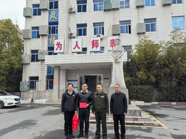 1月24日下午,肥东县委常委、人武部部长徐轶在县委统战部副部长罗齐虎的陪同下,来到合肥市通用技术学校慰问党外优秀代表丁太升。受学校党委副书记、校长周仁宏的委托,党委副书记、副校长杨家奇热情迎接县领导一行。