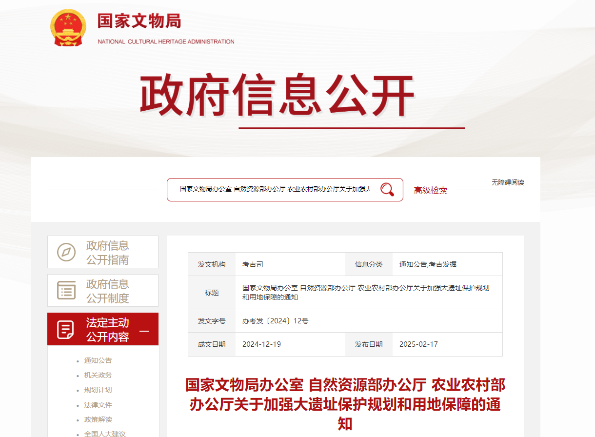 为深入贯彻落实党中央、国务院有关加强文物系统性保护和合理利用的要求,落实《国务院办公厅关于印发“十四五”文物保护和科技创新规划的通知》(国办发〔2021〕43号),进一步加强大遗址保护规划和用地保障,现就有关事项通知如下: