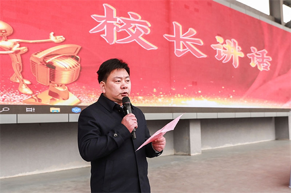 在热烈的掌声中,校长杨应明发表了新学期致辞。他首先向全体师生致以新春的问候,并回顾了过去一年学校在教育教学、校园文化建设等方面取得的丰硕成果。展望新学期,他表示将继续以高质量党建引领教育教学的高质量发展;面对全体师生,他根据年级和岗位特点提出了在新学期的期望,寄语全体师生要以更加饱满的精神、更加坚定的步伐和更加务实的作风迎接挑战、追逐梦想,共同书写庐江二中更加辉煌的篇章。