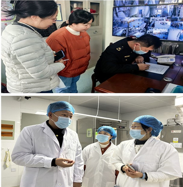 为进一步做好新学期幼儿园食品安全工作,切实保障幼儿饮食安全,筑牢食品安全防线,2月19日上午,庐阳区市场监督管理所一行来到合肥市安庆路幼儿园教育集团总园进行食品安全检查,总园食品安全总监房静玥、集团团支部书记黄筱禹老师、食品安全总监王静静、阎艳老师全程陪同。