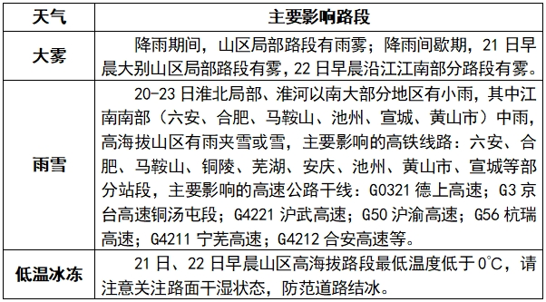 表1 未来三天交通气象影响预报