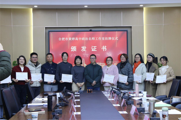 3月5日上午,合肥市黄婷名师工作室揭牌仪式暨首次研修活动在合肥一六八中学顺利举行。合肥市教育科学研究院中学政治教研员侯新旺,合肥一六八中学党委副书记、校长罗在兵,副校长苏键等出席活动,与全市部分优秀思政教师代表齐聚一堂,聚焦“共生思政”,共话新课程改革背景下思想政治教学创新路径,打造教育创新共同体。