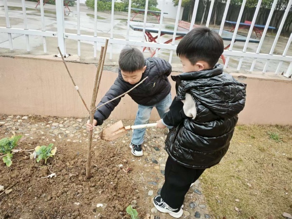 活动当天,孩子们手持小铲、水舀等工具,脸上洋溢着兴奋与期待。在老师的带领下,他们学会了如何挖坑、培土、浇水,每一步都小心翼翼,生怕惊扰了即将扎根的小树苗。小手轻抚过嫩绿的叶片,仿佛在与未来对话,种下的是树苗,更是对美好生活的向往和憧憬。孩子们的身影忙碌而快乐,汗水沿着脸颊滑落,却挡不住他们心中的喜悦。看着自己亲手种下的小树,孩子们眼中闪烁着光芒,那是对生命成长的敬畏,也是对环境保护责任的初步认知。
