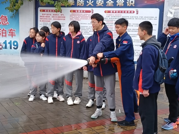 为了让同学们有更深刻的体验,消防员指导大家试穿防护装备。穿上厚重的防护服,同学们立刻感受到消防员日常训练和救援的艰辛。一位同学感慨道:“这衣服好重,消防员叔叔们穿着它还要执行任务,太不容易了!” 同学们还拿起水枪,体验消防员日常灭火训练。