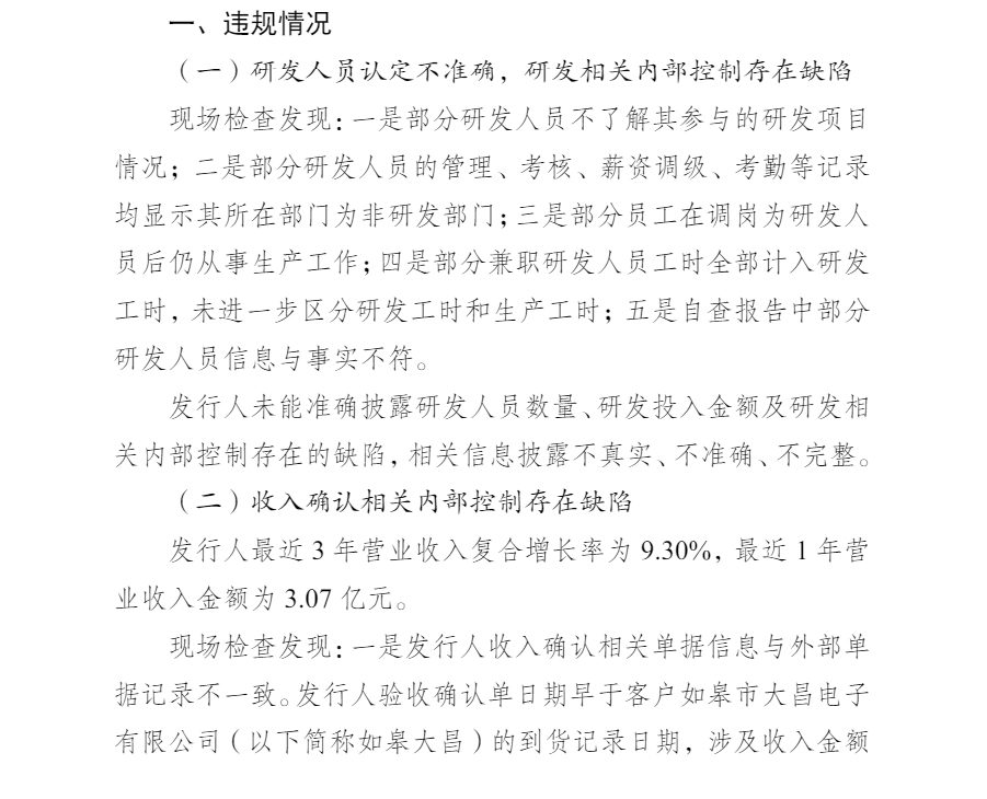 发行人作为信息披露第一责任人,在先后出具的多份自查报告中发表与事实明显不符的结论,未能如实说明研发人员数量、研发投入金额及收入确认相关信息,未能保证发行上市申请文件和信息披露的真实、准确、完整,违规事实清楚,情节严重。