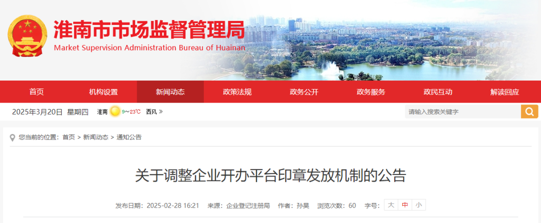 一、自2025年2月28日起,通过淮南市企业开办平台在淮南市各市辖区、毛集实验区、高新区、经开区、凤台县登记注册的新开办企业,不再免费发放实体印章。