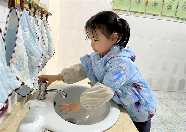 小班老师们通过动画短片和互动问答,带领幼儿走进水的世界,“刷牙、洗脸、做饭、浇花.....我们的生活不能离开水”孩子们积极分享一日生活中的用水场景,初步理解水与生命的紧密联系。在盥洗环节,孩子们也积极践行节水好习惯,饮水时喝多少接多少,洗完手之后拧紧水龙头,做到不浪费生活用水。