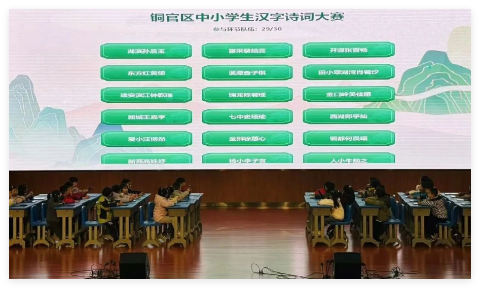 汉字诗词是中华文化的瑰宝,承载着千年智慧。本次大赛旨在激发青少年对经典的热爱,提升文化素养,弘扬传统文化,展现中华文化的持久魅力。经过激烈角逐,各年级组前六名脱颖而出,48名学生将代表铜官区参加市级比赛。(胡嫣)