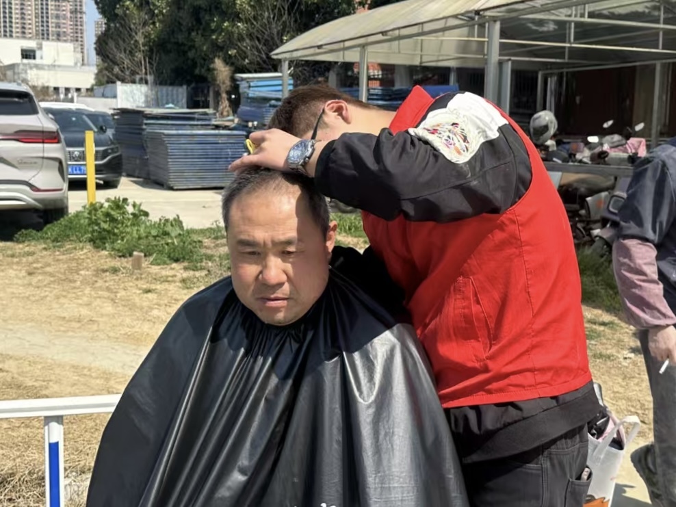 活动现场,社区工作人员与志愿者早早布置好“理发点”,几把椅子、几把剪刀、围布和消毒工具组成了临时的“爱心发廊”。尽管条件简单,但志愿者们的服务热情不减。志愿者耐心询问工友们的需求,凭借娴熟的技术,为他们修剪出清爽利落的发型。工友们纷纷表示,平时忙着抢工期,很少有时间理发,这次活动真是办到大家的心坎上了!钢筋工李师傅看着镜子里刚理完发的自己,笑着道:“剪完头发人都精神了,干活更有劲儿了!”