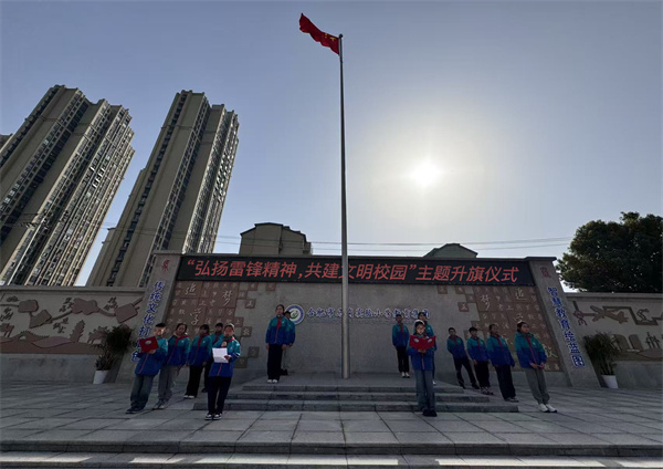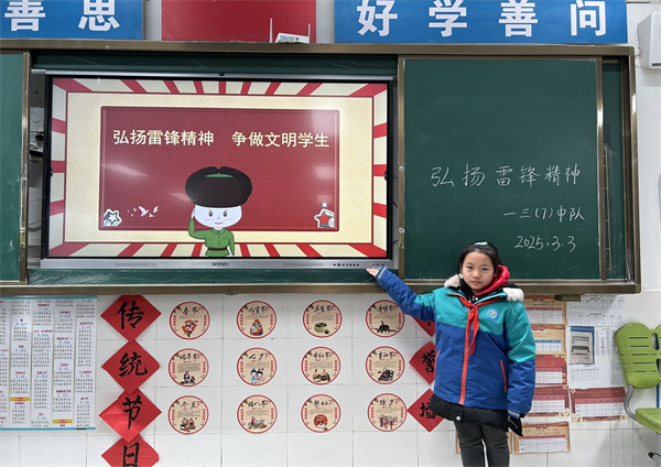 3月3日上午,学校举行“弘扬雷锋精神,共建文明校园”主题升旗仪式。国旗冉冉升起,少先队员代表以《雷锋精神永不褪色》为题发表演讲,号召全体队员“从点滴做起,让雷锋精神照亮校园每一个角落”。同日,各中队开展学雷锋主题班队课、学唱《学习雷锋好榜样》、绘画学雷锋黑板报等活动,让雷锋精神根植童心。