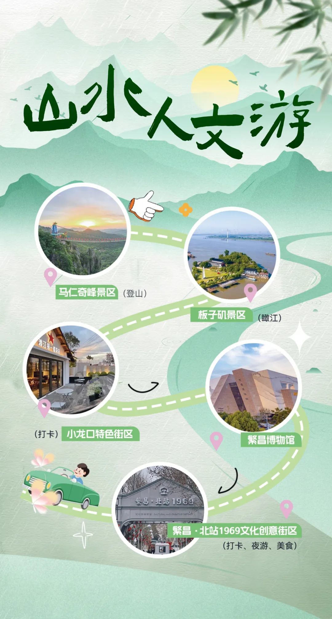 繁昌博物馆→繁昌窑考古遗址公园→人字洞遗址→板子矶景区→小龙口特色街区→繁昌北站1969文化创意街区