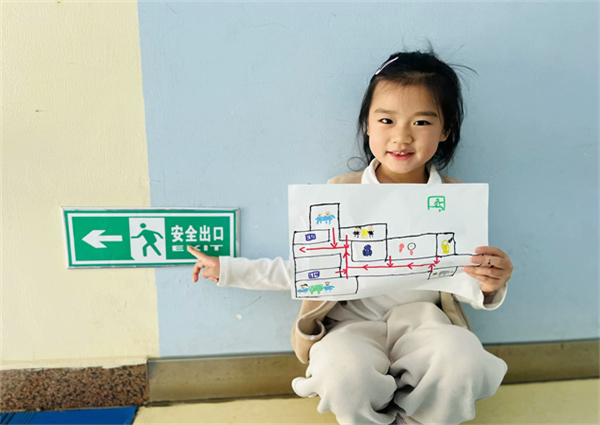 大班教师组织幼儿化身“小小安全员”,对幼儿园各角落进行安全大检查。师幼共同讨论生活中可能会遇到一些意外事故,学习自救自护的小技能。设计幼儿园逃生路线图,进一步激发幼儿的保护意识和掌握保护自己的方法。