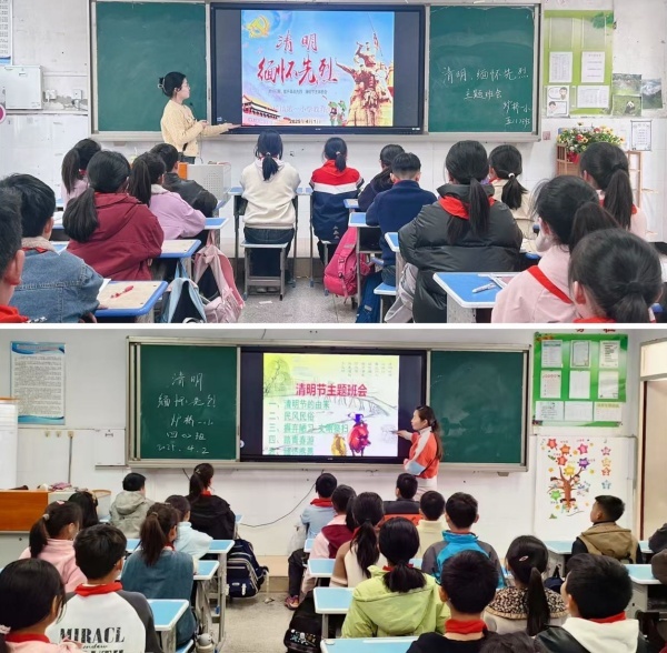 各班召开了清明节主题班会。老师向同学们介绍了清明节的由来、习俗和意义,讲述革命先烈的英雄事迹,号召同学们不忘历史,继承先烈遗志,发奋学习。