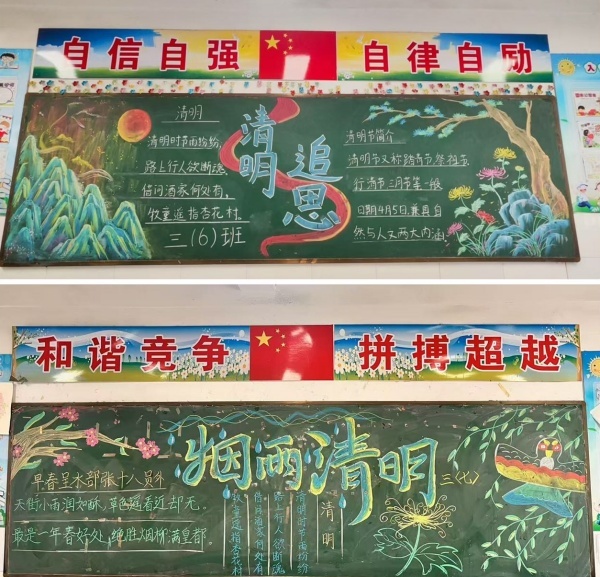 此外,各班同学精心创作,用黑板报、手抄报图文并茂的方式表达对革命先烈的崇高敬意,抒发自己的爱国情怀。