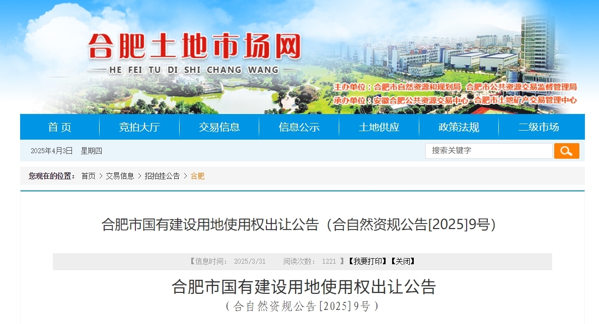 近日,据合肥市土地市场网消息,合肥6宗商住地将集中挂牌出让总出让面积156亩,计划于4月25日竞拍。