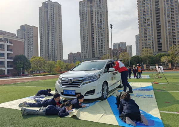 在阳光明媚的校园里,小朋友们在志愿者的引导下积极参与了六个精心设计的游戏:认识车辆盲区、探索神奇的盒子、急救知识排排序、认识大货车内轮差、安全头盔接力赛以及交通安全出行棋。这些游戏不仅让小朋友们在欢声笑语中加深了对交通安全知识的理解,还让他们掌握了必要的交通安全技能和应急处理方法。