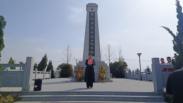 庄严肃穆的烈士纪念碑下,党员和学生代表怀着深深缅怀和无限崇敬之情,向英烈们鞠躬默哀,敬献花篮和鲜花。